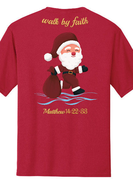 Walk By Faith Christmas Shirt – Santa Walking on Water Tee – Matthew 14:22-33 Faith Shirt – Christian Christmas T-Shirt